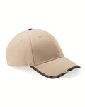 Structured six-panel, mid-profile cap heads out with a camo trim visor and camo undervisor.